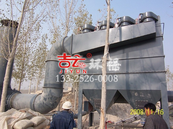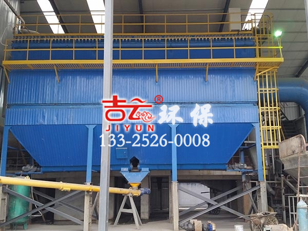 (2)氣體淨化過程:含塵氣體經進灰口進入除塵設備機組後,折向集塵箱及氣流緩沖室,較粗塵粒由于慣性碰撞自然沉降于集塵箱,達到預收目的,減輕了袋濾量,提高了濾袋使用壽命。較細塵粒随氣流上升進入各濾室,在負壓風的作用下,阻附于濾袋外層,被淨化的氣體經出風彙風管路排出。